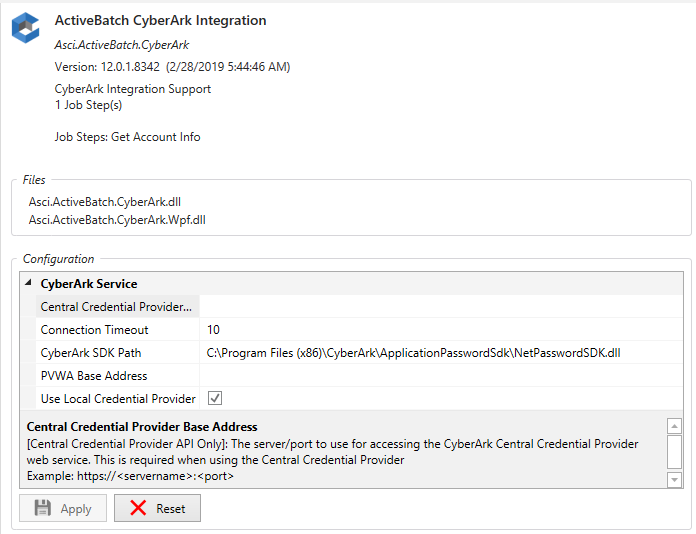 ActiveBatch requires the CyberArk Local Provider Credential SDK be installed on the Job Scheduler machine.