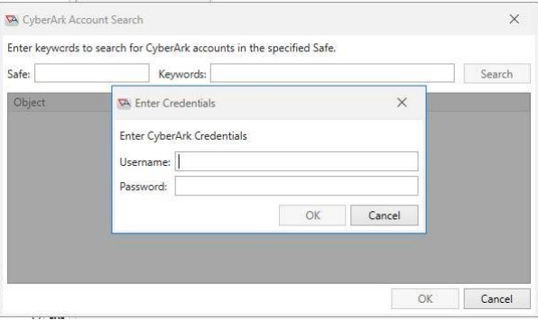Click the Search button to search for a CyberArk account. This will open the Search dialog. Enter