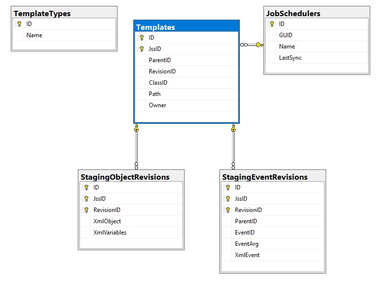 The job schedulers table maintains a list of all job schedulers which have been synchronized with this reporting database. On initial synchronization of the job scheduler, it is assigned a unique ID which will identify all related data with that Job Scheduler. Using the ID column from the JobSchedulers table, any data from any other table can be tied back to that Job Scheduler using the corresponding JssID column. This table also contains a LastSync column which contains the last time the Template Reporting ETL Job has been run for that particular Job Scheduler.